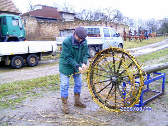 Reinhard Klose beim Nestbau mit Zweigen als Grundlage für den Nestbau der Störche