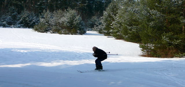 ...und auch eine Schneebar mit “Apres-Ski”-Stimmung wird dieser rasante Skifahrer im Viernheimer Wald vergeblich suchen...